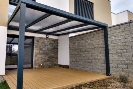 Zadaszenie z poliwęglanu wytrzyma ulewny deszcz i nawet większą pokrywę śnieżną, z obciążeniem od 60 do 150 kg/m². Poliwęglan zawiera skuteczny filtr UV, który w 100% zapobiega promieniowaniu UV, a dzięki 75% udziałowi składnika IR jest odporny również na rodzaj UVB. Odpływ wody znajduje się po prawej lub lewej stronie.